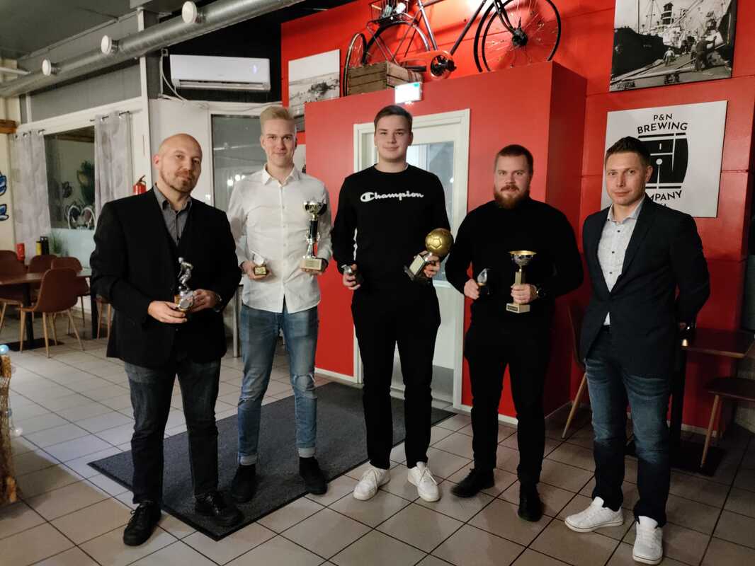 Kotkan Erotuomarikerho päätti 65. toimintavuotensa perinteisellä iltatilaisuudella, joka tällä kertaa järjestettiin koronaturvallisesti yksityistilaisuutena Ravintola Saarnin tiloissa Kotkan Jylpyllä. Paikalle oli saapunut ilahduttavasti 25 erotuomaritaustaista henkilöä tai heidän seuralaistaan. Tilaisuuden aikana ruokailun ohessa vaihdeltiin kuulumisia aktiivi- ja veteraaniosaston kesken sekä palkittiin kauden ansioituneimpia erotuomareita. Kauden erotuomarina palkittiin Roope Pynnönen, joka otti 18-vuotiaana isoja kehitysaskeleita kauden aikana ja edusti kerhoamme C-14 -lopputurnauksessa, jossa pääsi viheltämään pronssiottelun. Lisäksi loppukaudesta tarkoitettu III divisioonan vihellysdebyytti siirtyi vain loukkaantumisen takia. Vuoden 2021 avustavaksi erotuomariksi valittiin Saku Metsämuuronen, lupaavana erotuomariksi Anton Säämänen ja Fair Play -erotuomariksi Erik Pakkala. Kotkan Erotuomarikerho kiittää osallistujia sekä Ravintola Saarnia mainiosta tilaisuudesta. |
