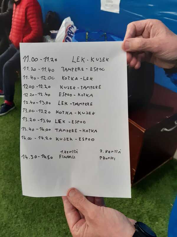 Loppuottelussa otettiin sitten revanssi Espoosta selvästi 3-0 -numeroin (Alex 2, Anton) ja poika kotiin. Kerhoa olivat edustamassa Anton Säämänen, Vertti Hallberg, Onni Ceder, Roope Pynnönen (mv), Ali Hussaini, Hiwa Haghi, Erik Pakkala, Alex Makarov, Juha Veini sekä Kouvolan ETK:n lainapelaaja Atte Haapaniemi.
